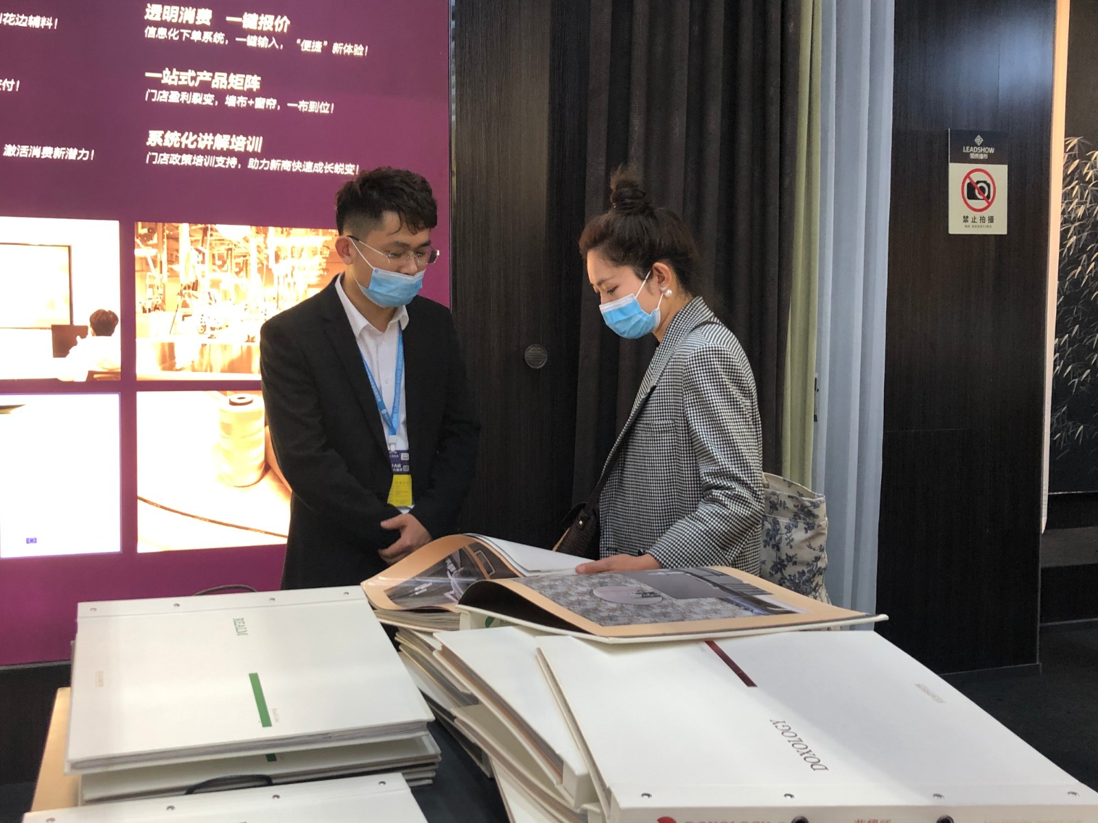 展位現(xiàn)場,每一位領繡的家人們都在自己的崗位上,積極熱情的完成自己的工作。他們以熱情的服務,專業(yè)的接待和講解,讓客戶深深感受到領繡的魅力,并簽約加入領繡這個大家庭!截止目前,簽約意向加盟商已達80余家,現(xiàn)場氣氛依舊火爆!